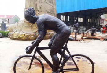 玻璃鋼仿銅戶(hù)外騎自行車(chē)雕塑