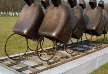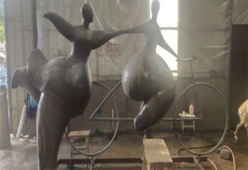仿銅騎自行車(chē)抽象人物玻璃鋼雕塑