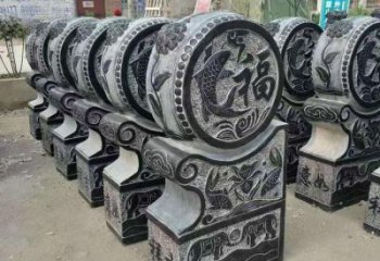古典精美大理石浮雕鯉魚(yú)吉祥圓形抱鼓石
