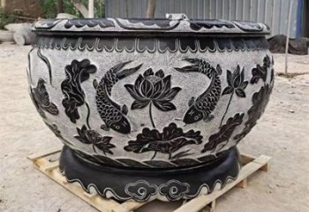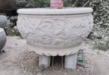 精美大理石浮雕鯉魚(yú)荷花舊庭院圓形水缸