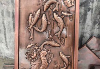 挺遠(yuǎn)壁畫(huà)精致銅質(zhì)浮雕鯉魚(yú),金玉滿(mǎn)堂裝飾墻
