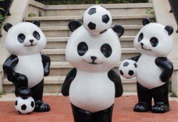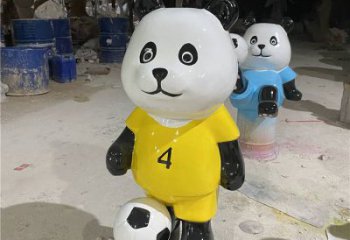可愛(ài)熊貓雕塑,擺放玻璃鋼足球,為庭院添彩