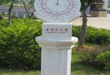 此為日晷石雕景觀雕塑,以日晷為核心,搭配刻有二十四節(jié)氣等文字的石雕,借光影與石刻,展現(xiàn)時(shí)間與節(jié)氣的關(guān)聯(lián)。